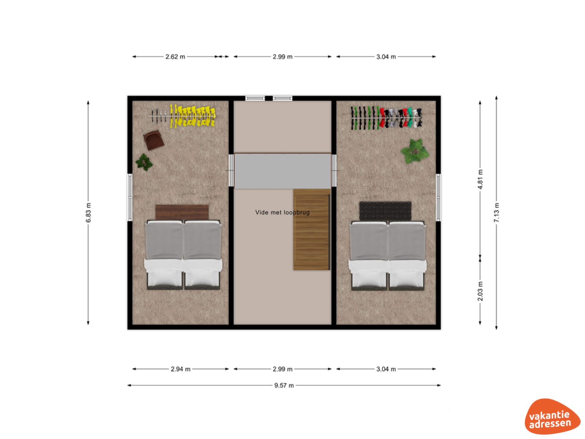 Slaapkamer 4: 2x 1-persoonsbed