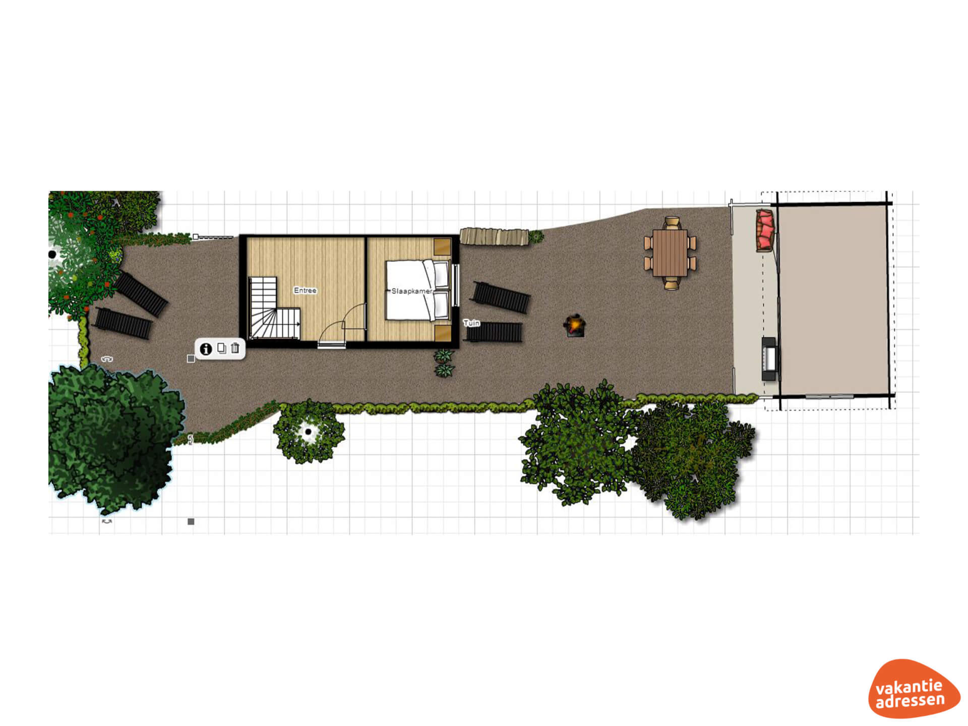 Op onze websites worden vanuit privacy overwegingen geen adresgegevens van vakantieadressen getoond. Op de kaart bij 'Locatie vakantieadres & overzicht Groepsactiviteiten' vind je een nauwkeurige weergave van de locatie van het vakantieadres. Na je boeking ontvang je de adresgegevens van de verhuurder.