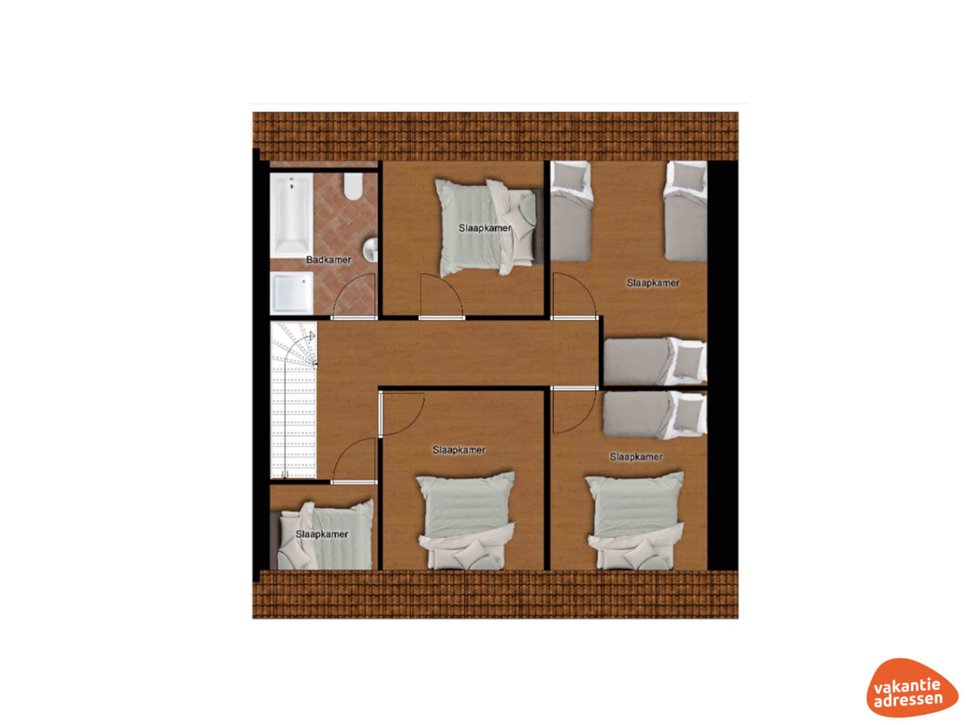 Slaapkamer 4: 3x 1-persoonsbed