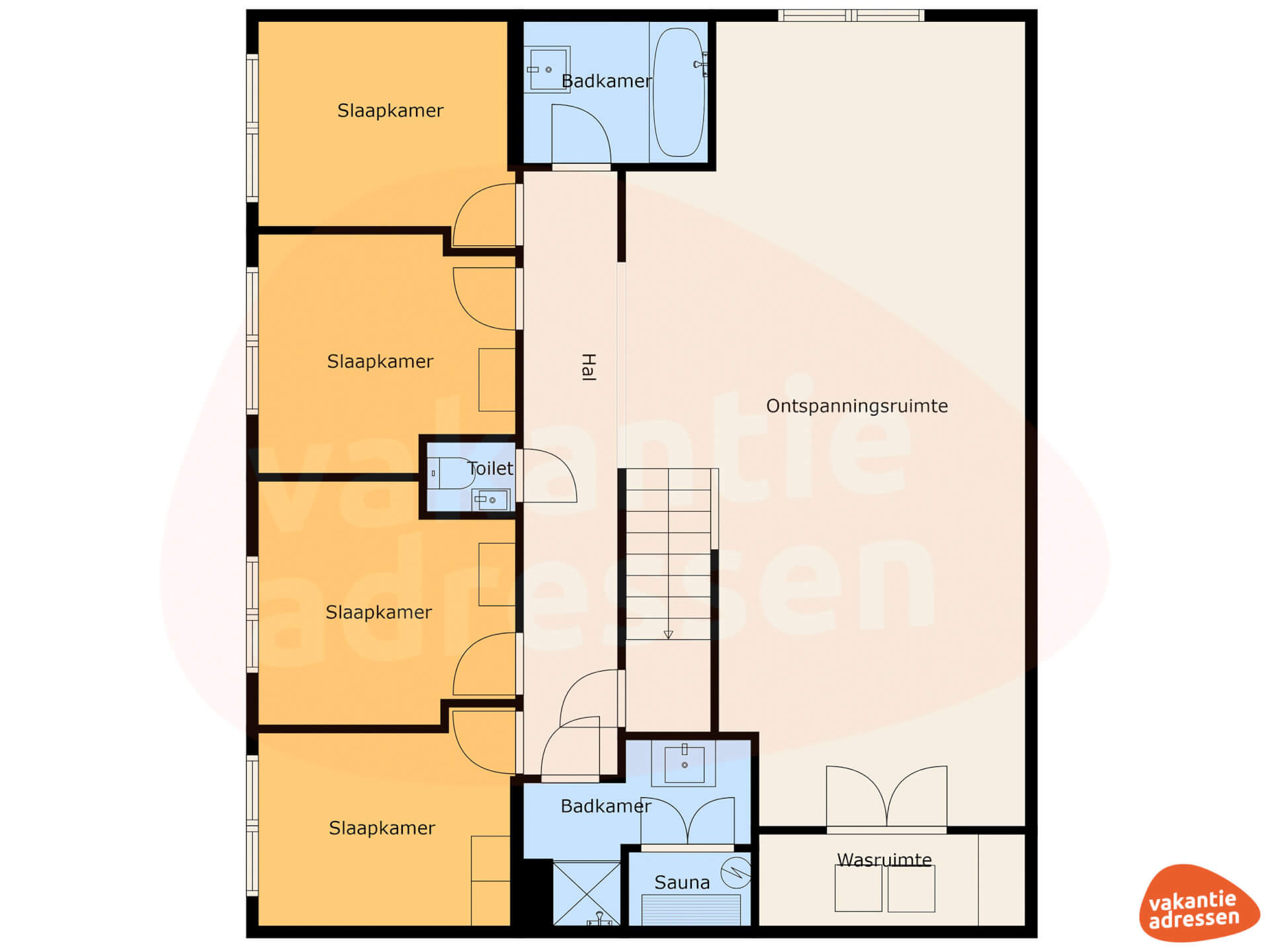 Je beschikt over 6 comfortabele slaapkamers, allemaal voorzien van boxspringbedden. Daarnaast zijn er in de recreatieruimte nog twee 2-persoonsslaapbanken aanwezig, ideaal voor de kinderen of als extra slaapruimte. De slaapkamers zijn licht en functioneel ingericht, zodat iedereen kan genieten van een fijne nachtrust. De 2 slaapkamers beneden beschikken elk over een eigen badkamer emt douche en wastafel. De 4 slaapkamers boven delen 2 badkamers, 1 met een 3-persoons sauna en een stoomdouche, terwijl de andere badkamer een bubbelbad heeft, voor extra momenten van ontspanning.