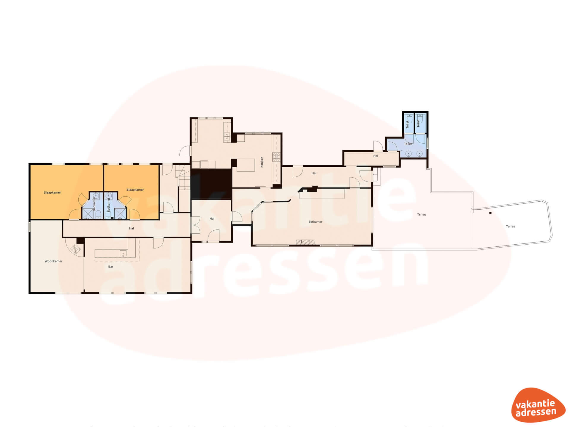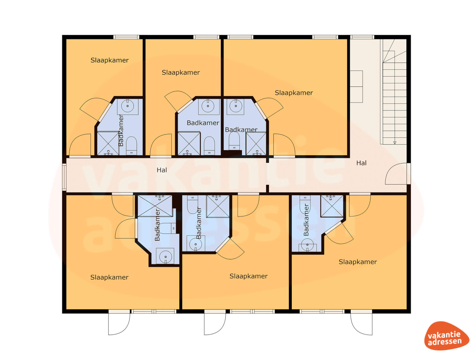 - Alle slaapkamers zijn voorzien van eigen douche, toilet en wastafel