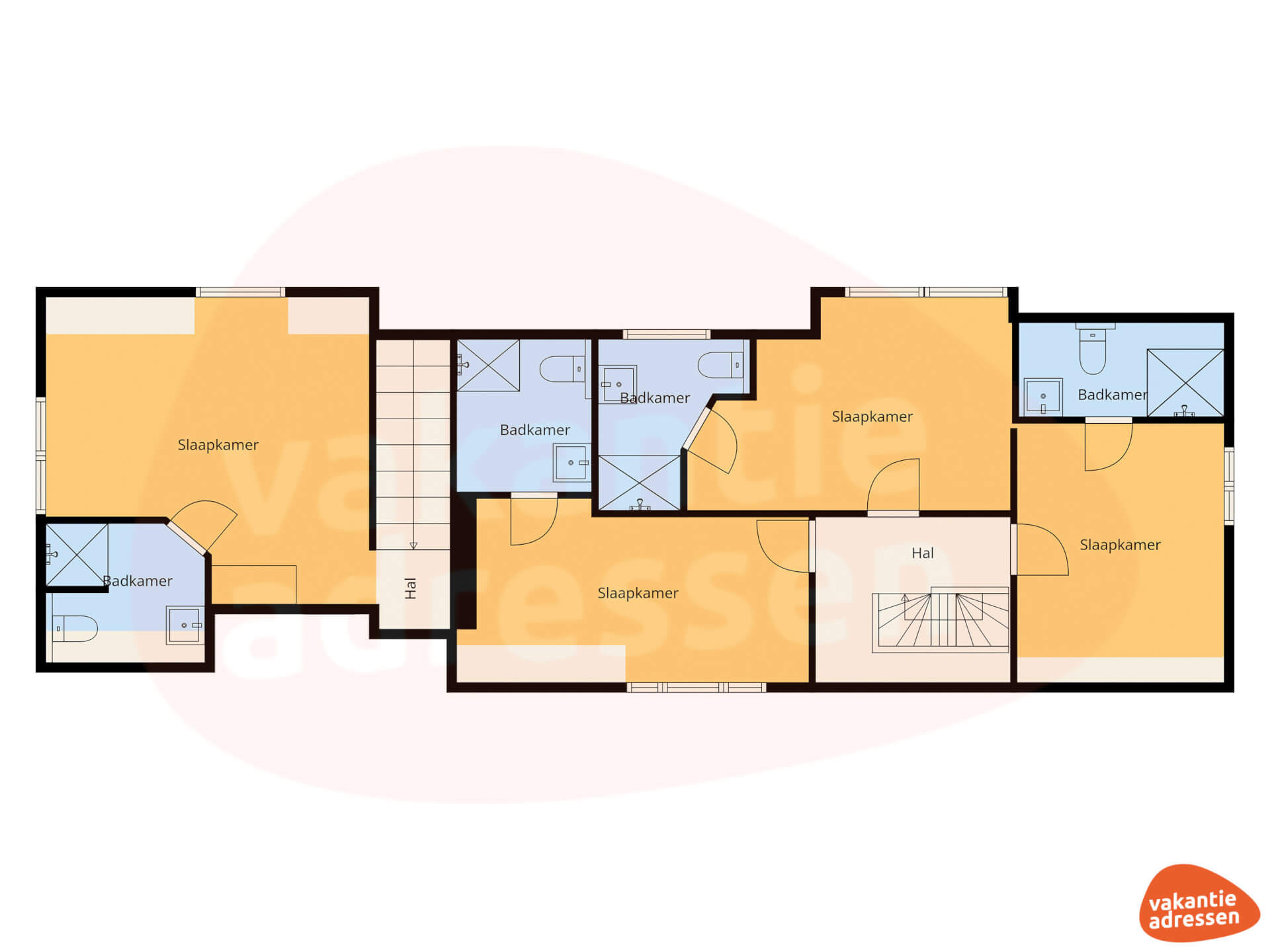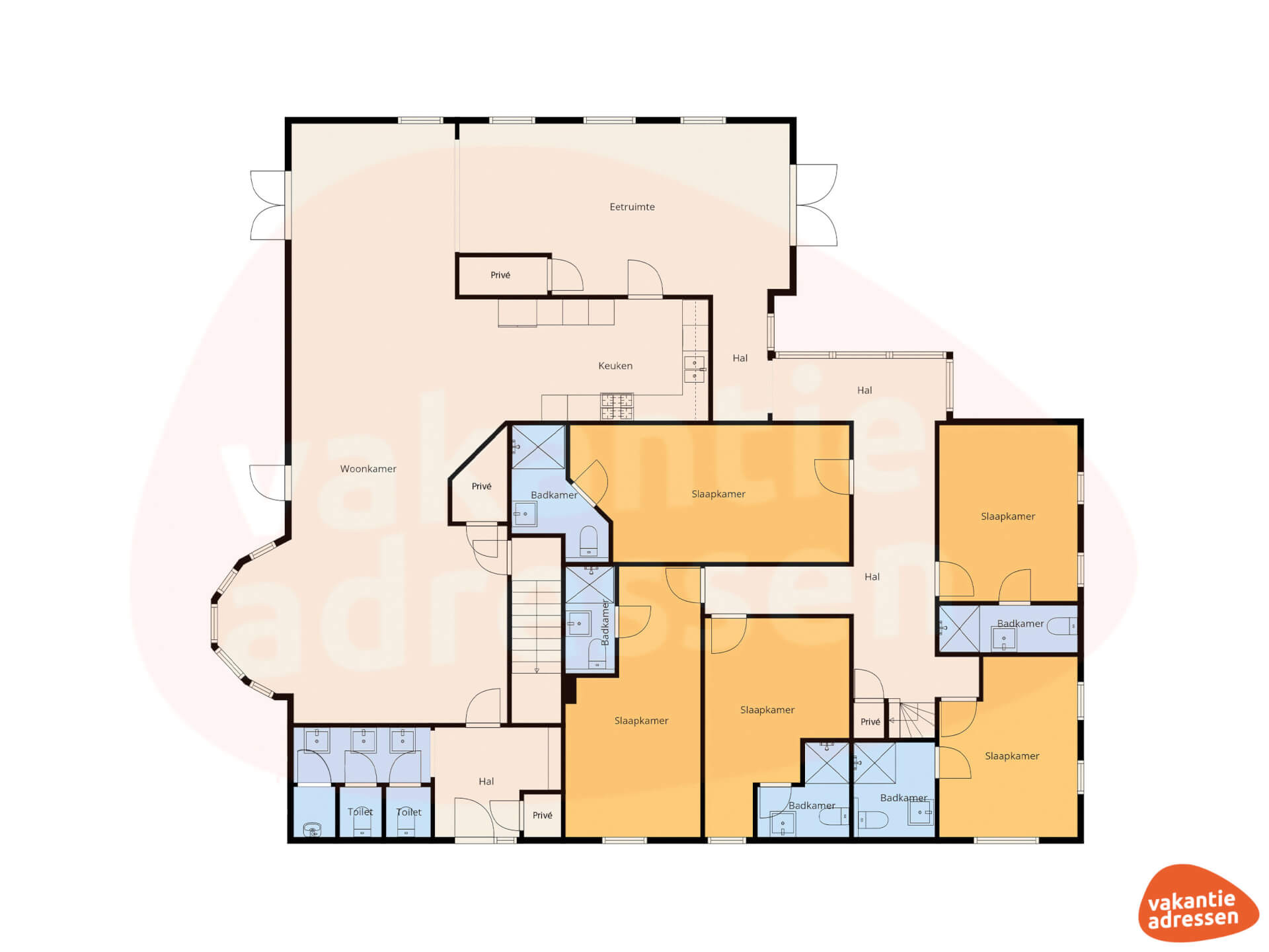 - Alle slaapkamers zijn voorzien van eigen douche, toilet en wastafel