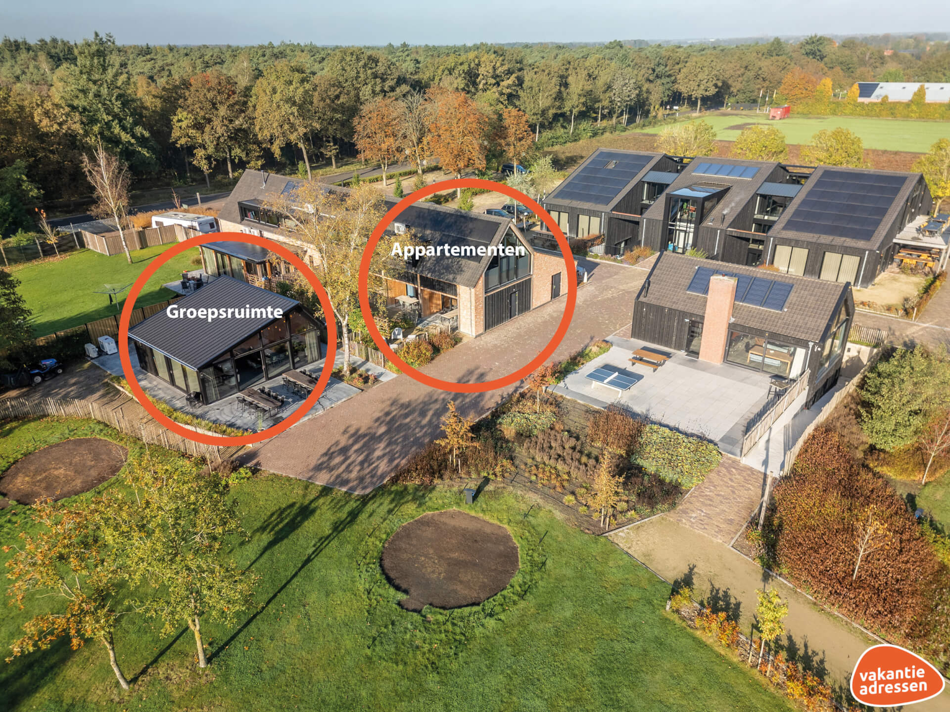Zoek je een unieke vergaderlocatie waar je in alle rust kunt overleggen, ontspannen en overnachten? Deze luxe accommodatie voor 23 personen is ideaal voor zakelijke bijeenkomsten, heisessies of meerdaagse trainingen. Gelegen vlak bij de Belgische grens combineert deze locatie het beste van twee werelden: een comfortabele groepsruimte om samen te komen én afzonderlijke luxe accommodaties voor privacy en rust. Dit vergaderadres biedt alles wat je nodig hebt voor een inspirerende meerdaagse bijeenkomst. De accommodatie bestaat uit 5 luxe accommodaties, met in totaal 9 slaapkamers en 5 badkamers. De accommodaties liggen op korte loopafstand van een volledig ingerichte privé groepsruimte waar je als groep samen kunt vergaderen, eten of ontspannen. Zo combineer je individuele rust met collectieve focus.