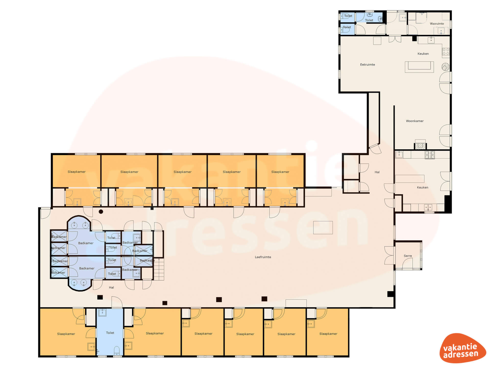 Let op: Het vakantiehuis wordt verhuurd aan maximaal 25 personen (incl. baby's en kinderen).
