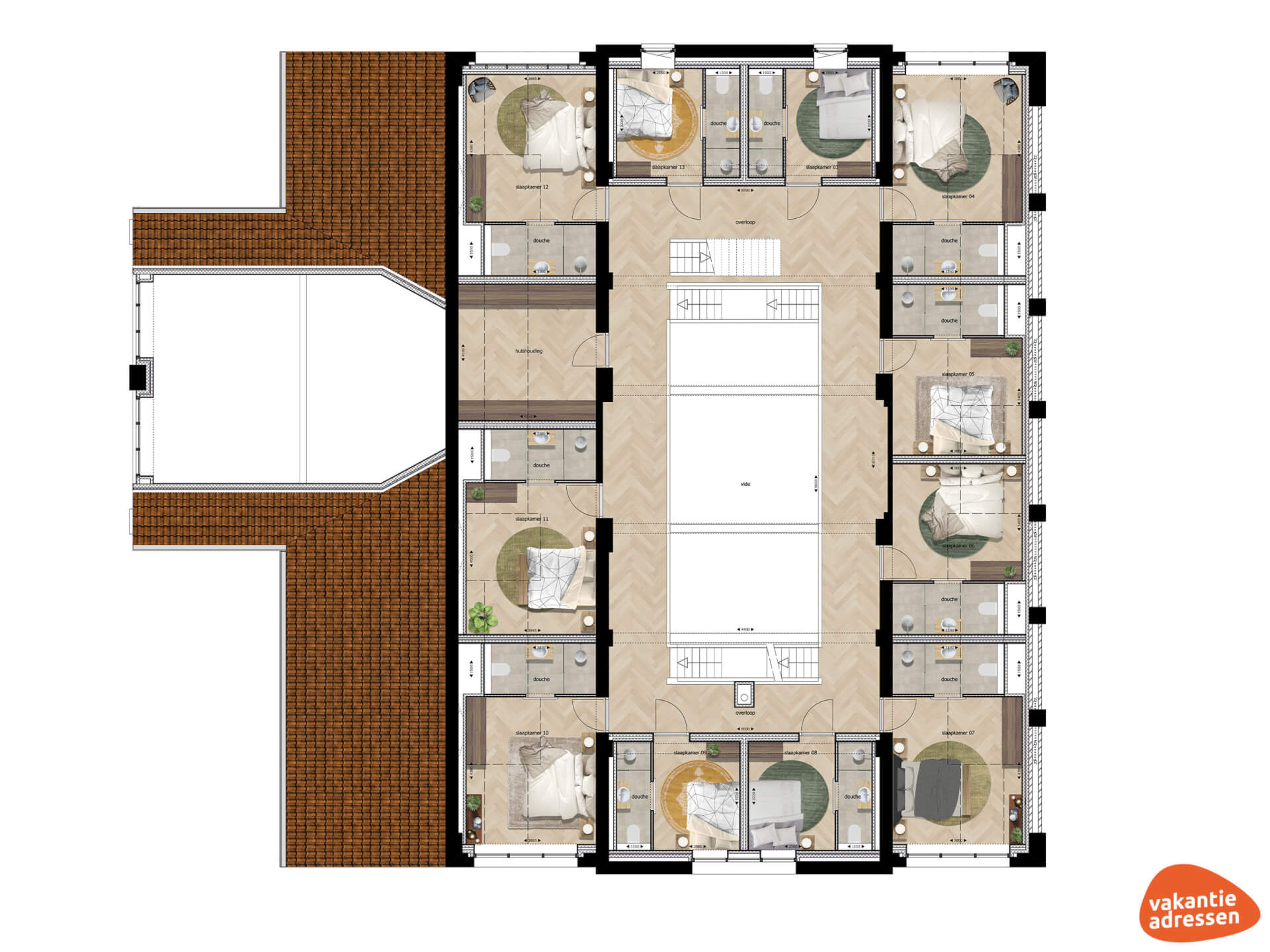Nieuw in ons aanbod sinds april 2025 - Landelijk gelegen in Limburg, op een steenworp afstand van de Maas en omringd door natuur, verrijst een nieuw vakantiehuis met gezamenlijk binnenzwembad en sauna, dat vanaf december 2025 gehuurd kan worden. Dit karaktervolle en luxe vakantieadres ligt op een kleinschalig vakantiepark en is met 13 slaapkamers en 13 badkamers perfect voor gezelschappen tot 26 personen. Hier vind je alles wat je nodig hebt - en nog veel meer. Van wandelen in de mooie natuur tot ontspannen in het gedeelde binnenzwembad met sauna (gereed vanaf december 2025) of genieten van gezellige avonden samen in de sfeervolle en huiselijke leefruimtes. Dit vakantiehuis is de ideale bestemming voor families, vriendengroepen of collega's die samen willen genieten van een luxe en ontspannen verblijf in een prachtige omgeving.