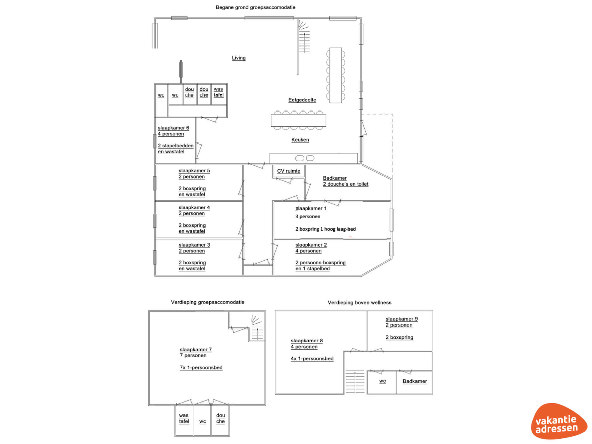 Appartement (Let op: groepen tot en met 18 personen kunnen gebruik maken van 7 slaapkamers. Grotere groepen kunnen gebruik maken van 9 slaapkamers)